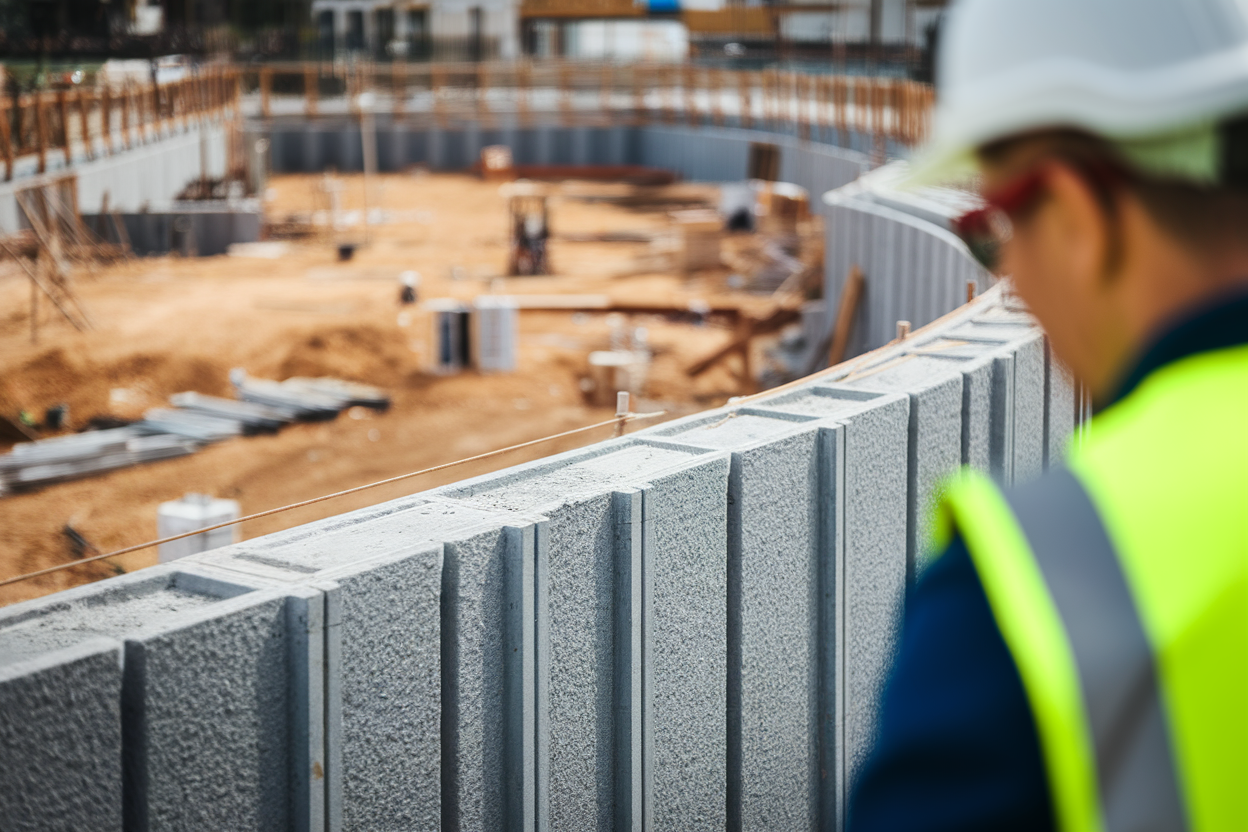 Plus accessible au bricoleur averti, cette technique consiste à monter un mur en parpaings à bancher, qui seront ensuite remplis de béton après installation du ferraillage.